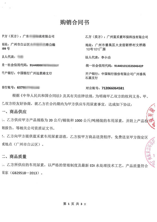 廣州藍禾素環保科技有限公司,是一家專業生產車用尿素溶液,尿素脫硝劑 氮氧化物還原劑企業集研發、生產、銷售為一體化,公司擁有22項車用尿素專利生產技術,銷售量全國top10,藍禾素產品系列并遠銷至歐美各國。